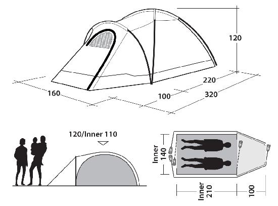 Šator za dvije osobe s povećanim prednjim predvorjem brzo se i jednostavno postavlja. Vanjski materijal je vatrootporni Outex® 3000 Select poliester, koji je 100% poliester. Unutarnji materijal je tanki i prozračni poliester. Pod je izrađen od polietilena s dvostrukim PU premazom.