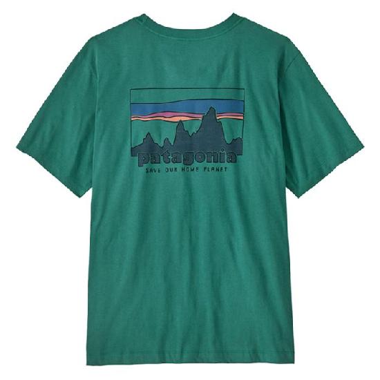 Muška majica kratkih rukava izrađena je od 100% organskog pamuka. Koristi 84% manje vode i proizvodi 16% manje CO2 od obične pamučne majice. Grafika '73 Skyline potječe s etikete koja je nekoć bila prišivena na Patagonia opremu. Dizajnirana je za planinarenje, putovanja i slobodno vrijeme.