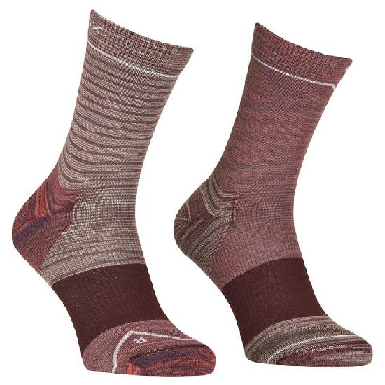 Ženske planinarske čarape izrađene su od 42% merino vune i pogodne su za korištenje tijekom cijele godine. Srednje zadebljani materijal na prstima i peti. Pojačanja pete za izdržljivost. Mrežasti materijal u području rista i sredine potplata za još bolju prozračnost i brzo sušenje. Oblikovane čarape za desnu i lijevu nogu.